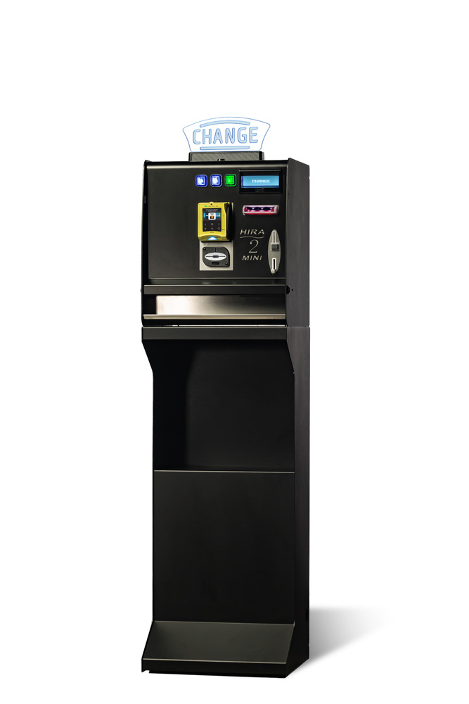 Equipo compacto de gran versatilidad. Acepta billetes y da cambio en dos tipos de moneda.