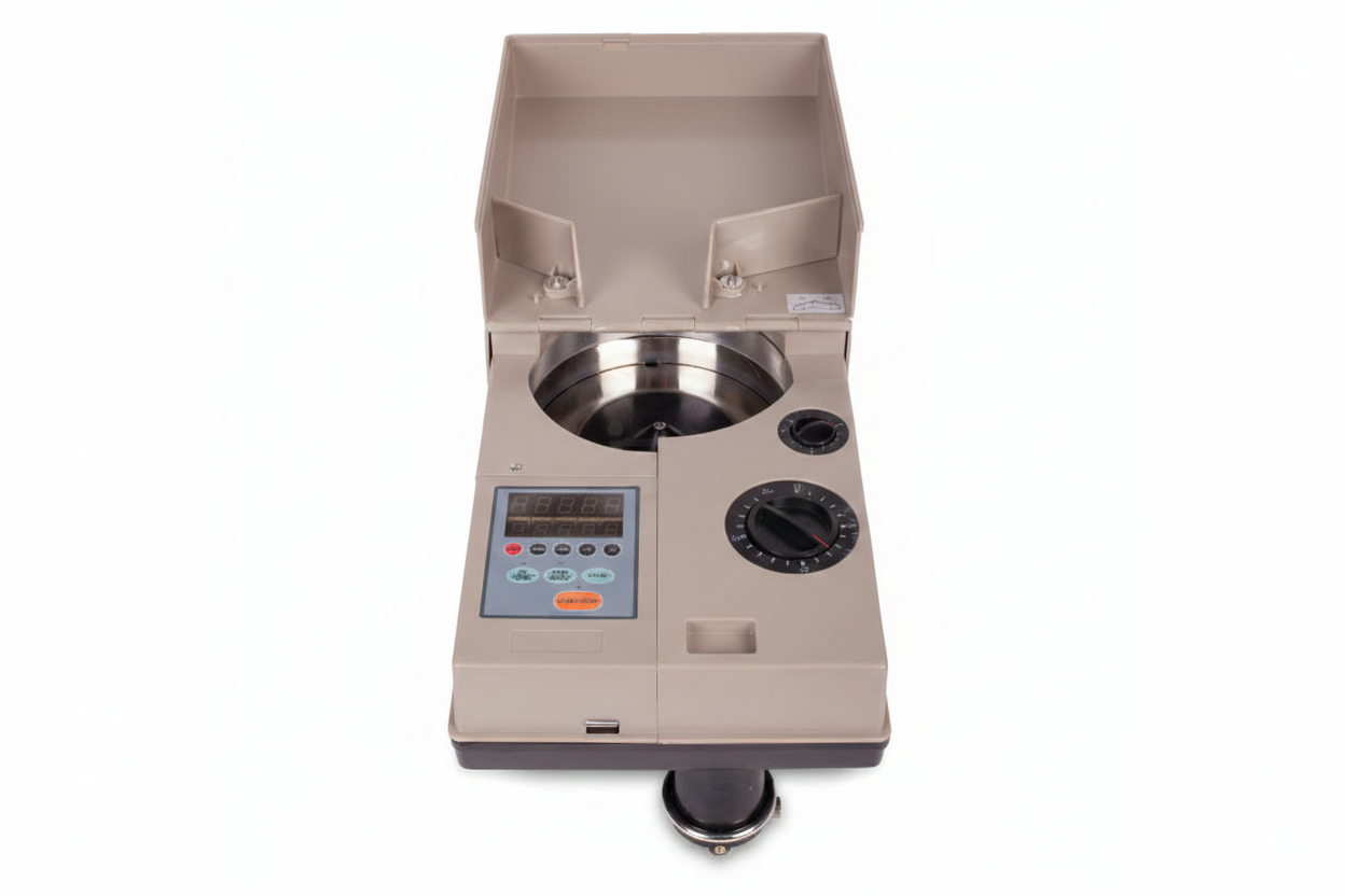 Maquina diseñada para el tratamiento de un volumen alto de monedas.